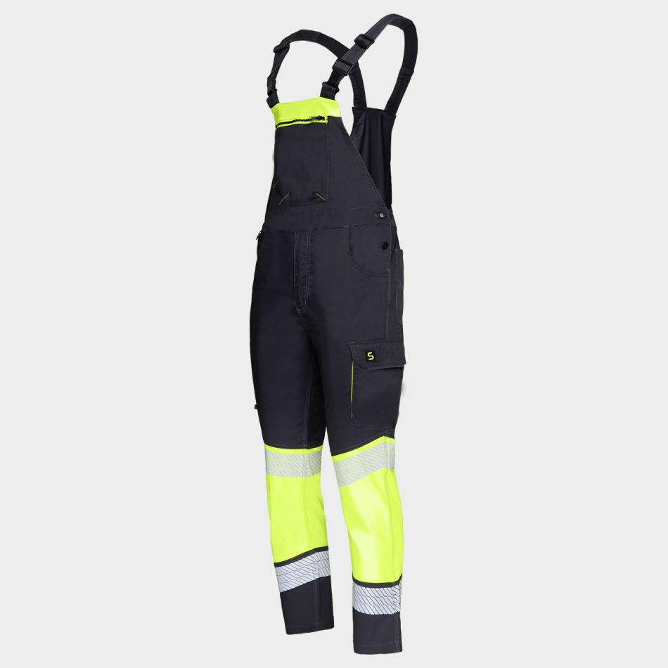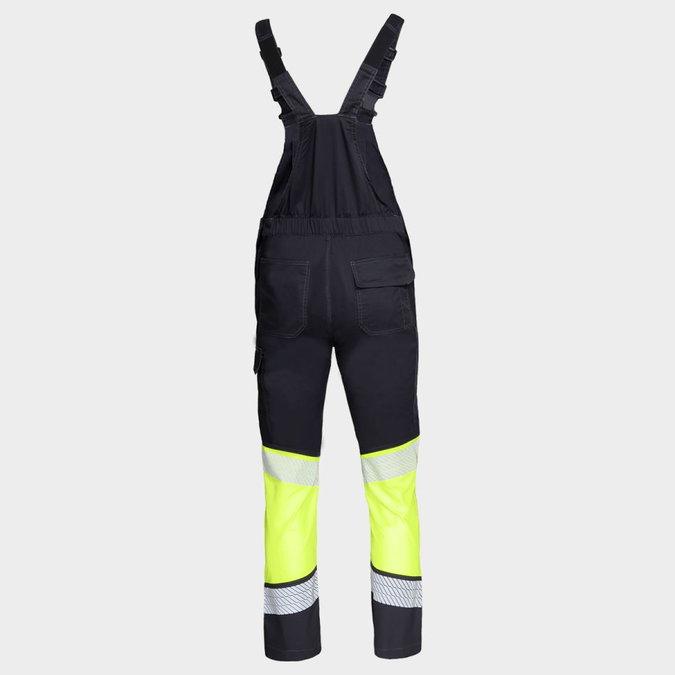 Сигнален работен полугащеризон с анатомична кройка и ластичен гръб за повече комфорт и свобода на движение.